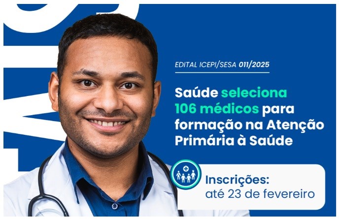 A Secretaria da Saúde (Sesa), por meio do Instituto Capixaba de Ensino, Pesquisa e Inovação em Saúde (ICEPi), lançou, na última quinta-feira (13), o edital com 106 vagas para médicos em formação na Atenção Primária à Saúde (APS) e cadastro de reserva. As inscrições vão até o dia 23 de fevereiro, pelo site https://icepi.es.gov.br/editais/abertos.